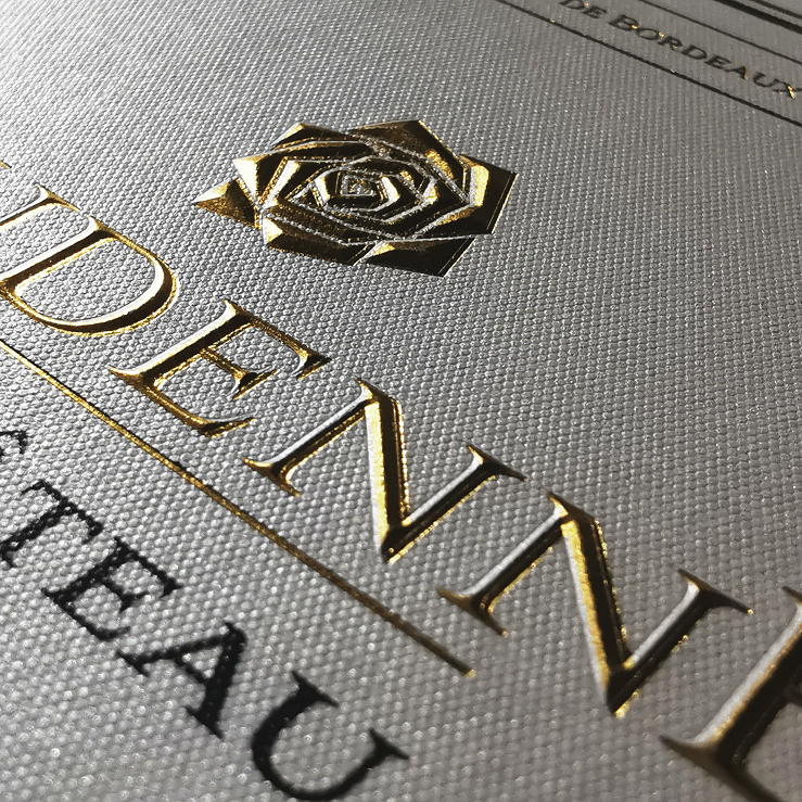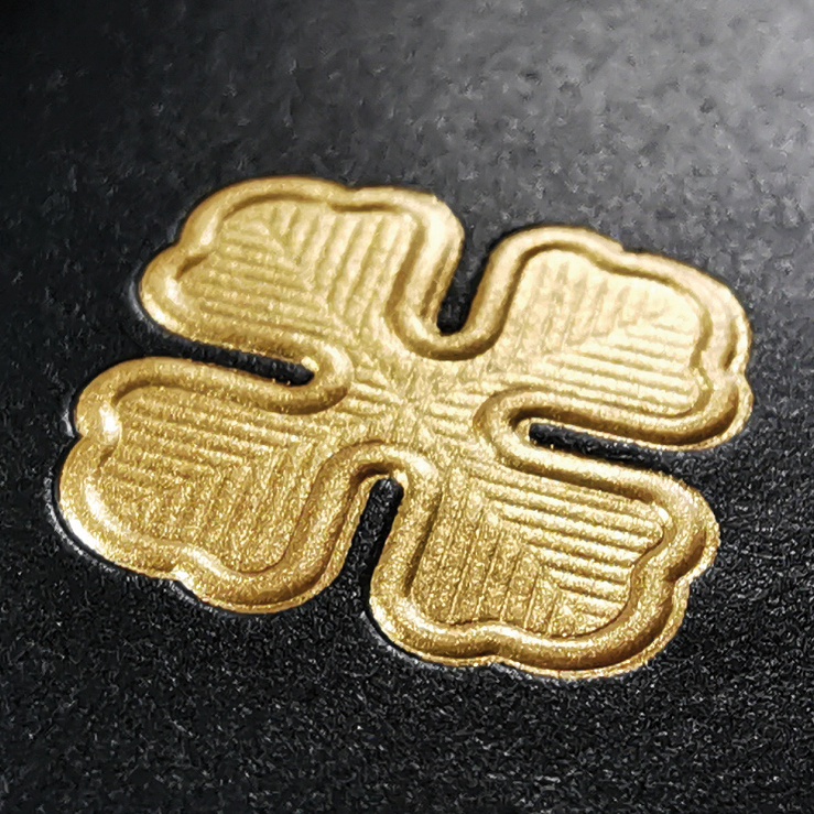 Les outils utilisés dans ce module sont traités à plat, nous pouvons donc réaliser des micros structures de dorure, des reliefs pointe de diamant, des dorures galbées ou même encore des reliefs effet 3D multiniveaux, qui seront un plus indéniable dans vos futurs projets.
